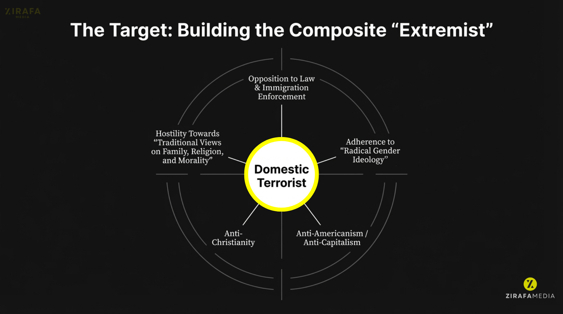 These descriptors don’t define a criminal method. They define a worldview—one that maps almost precisely onto the conservative media caricature of the “woke left.” Immigration advocates, trans rights activists, anti-capitalists, secularists, climate justice organizers, and pro-Palestine movements all find themselves within this frame.